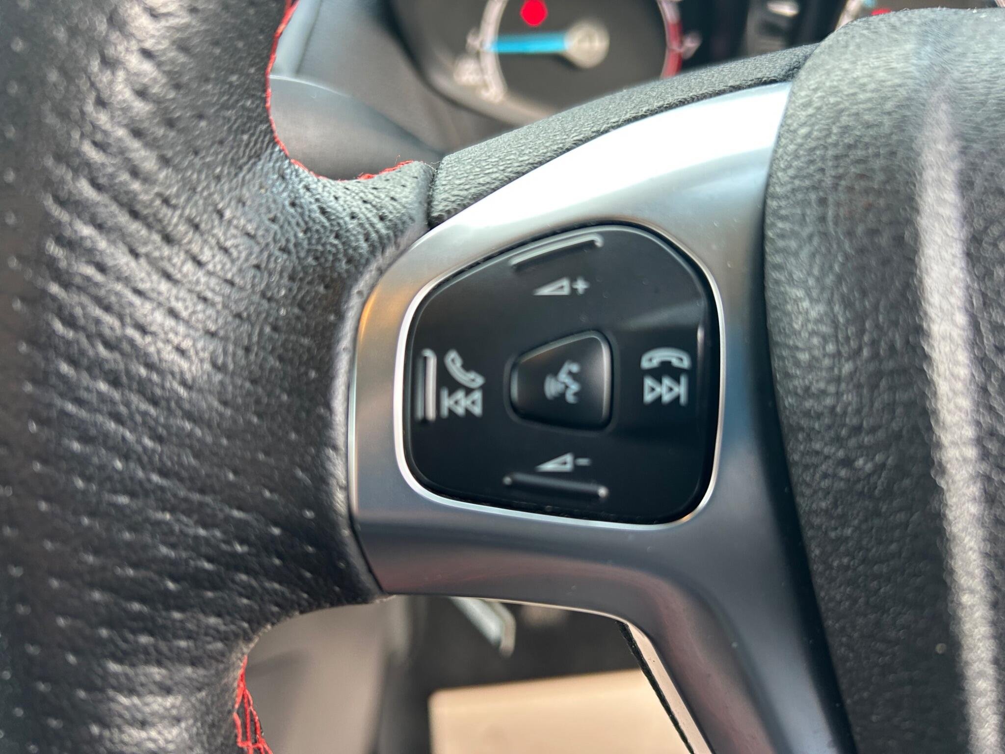 - Leather Steering Wheel with Red Stitching - Radio Controls and Leather Gear Knob with Red Stitch Gaiter